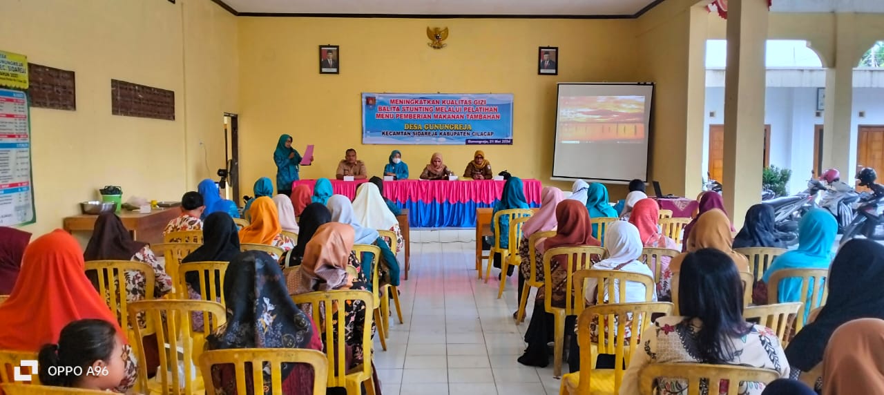 Gunungreja, 21 Mei 2024 — Dalam upaya meningkatkan kualitas gizi balita dan menurunkan angka stunting di Desa Gunungreja, Pemerintah Desa menggelar kegiatan Pelatihan Menu Pemberian Makanan Tambahan (PMT) pada Selasa, 21 Mei 2024. Kegiatan ini bertempat di Balai Desa Gunungreja dan dihadiri oleh kader posyandu, ibu-ibu balita, dan kader PKK.