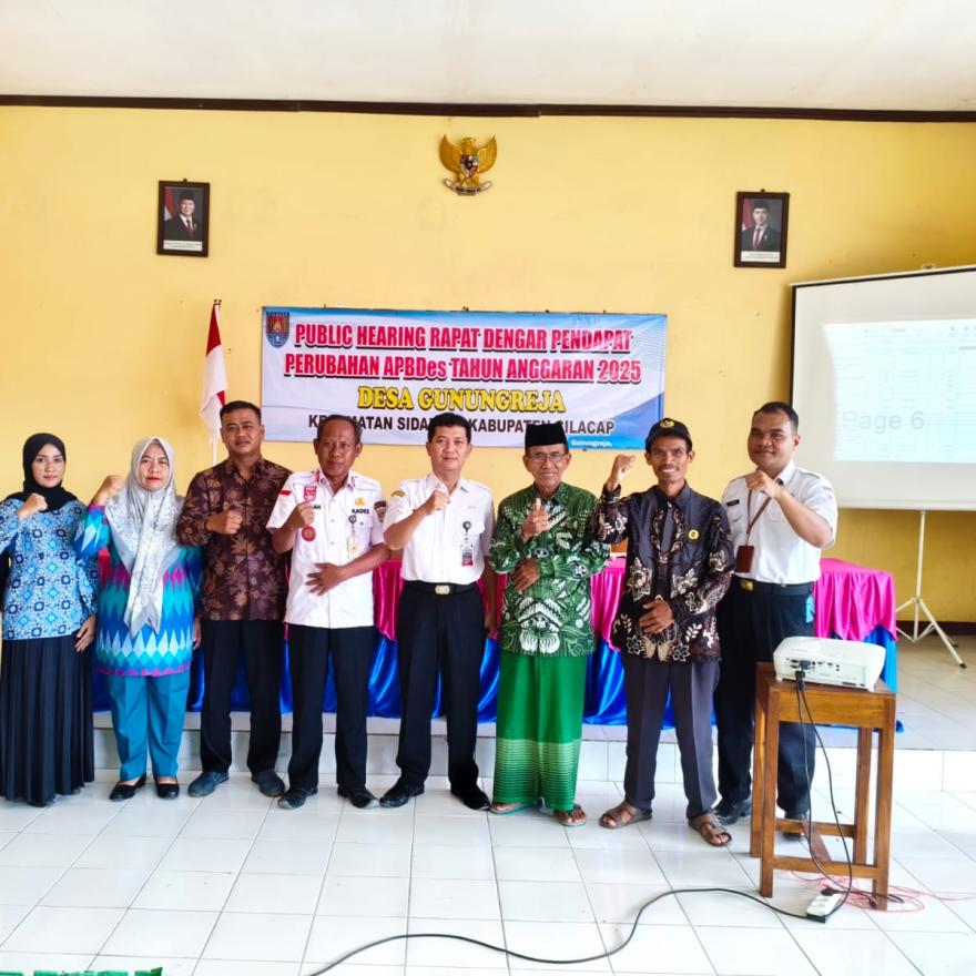 Desa Gunungreja, Kecamatan Sidareja, melaksanakan kegiatan Public Hearing Perubahan Anggaran Pendapatan dan Belanja Desa (APBDes) Tahun Anggaran 2025 pada Rabu, 03 Desember 2025 yang bertempat di Pendopo Balai Desa Gunungreja. Kegiatan ini dilaksanakan sebagai wujud transparansi dan akuntabilitas Pemerintah Desa Gunungreja dalam pengelolaan keuangan desa serta untuk menampung aspirasi dan masukan dari masyarakat.